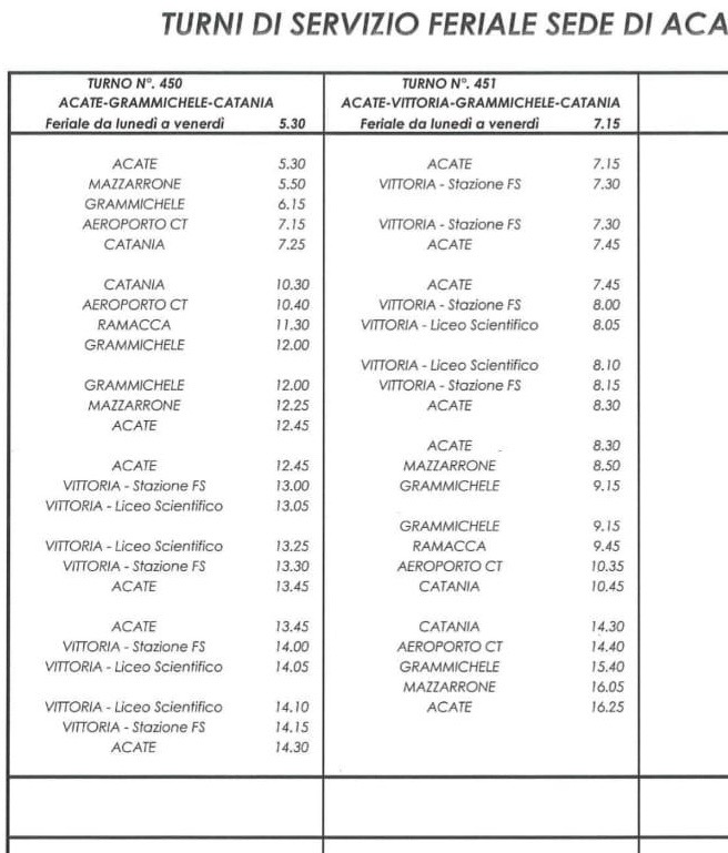 Mazzarrone alle ore 8:50 Grammichele alle ore 9:15 -Aeroporto alle ore 10:35 - Catania alle ore 10:45